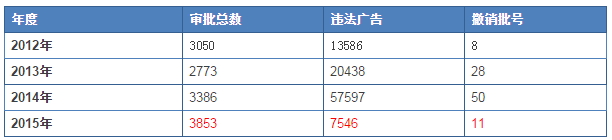 CFDA:2012年~2015年医疗器械监管统计数据分析